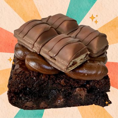 Topped with creamy Nutella ganache and crowned with a Kinder Bueno chocolate bar- brownies just got kinder.